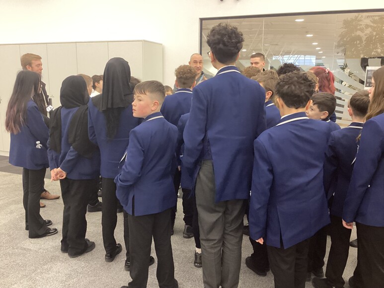The day began in the assembly hall, where students met with staff and registers were taken before boarding the coach to BT Group. On arrival, students were welcomed at the main reception and introduced to BT staff who guided them through the day.